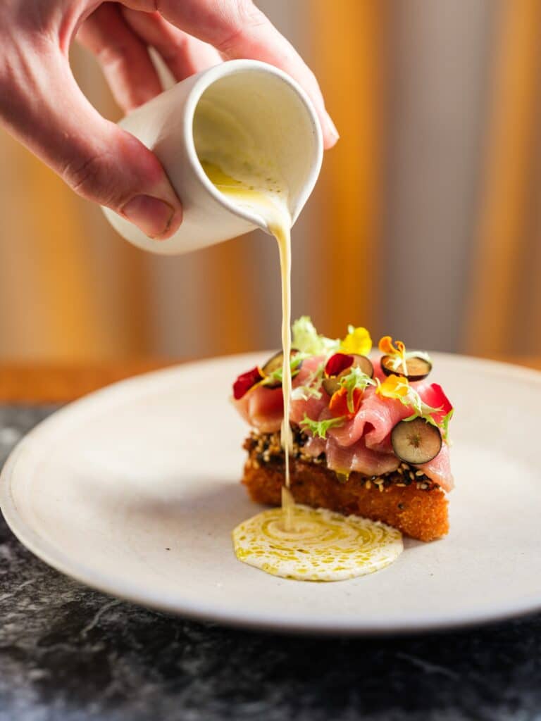 We try to offer the best contemporary example of fine dining in London – this doesn’t mean cloches and tablecloths (we don’t own a single one of either!) but the finest produce we can find cooked with precision and a high level of technique. Our team is led by Executive Chef Chris Bassett who has been with us for several years and his team in the kitchen is led by our Head Chef Angelica Hope.